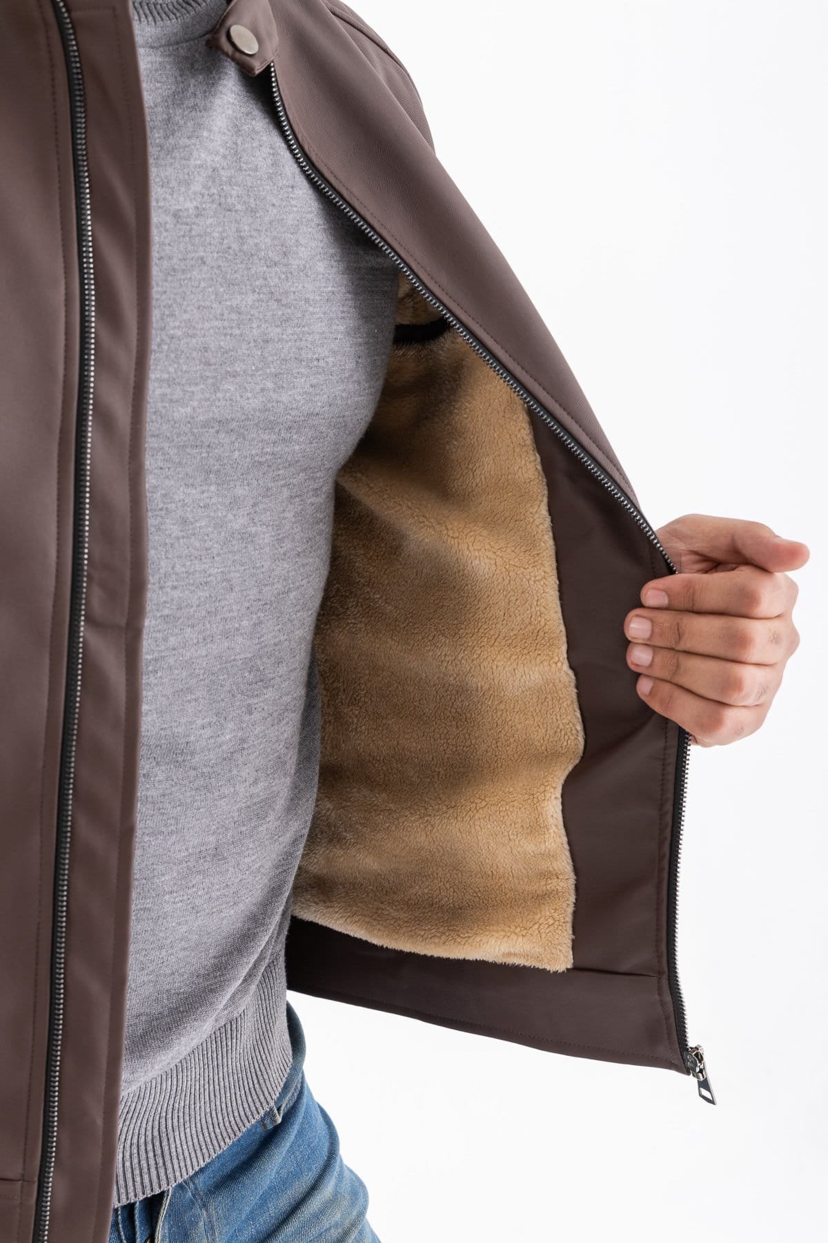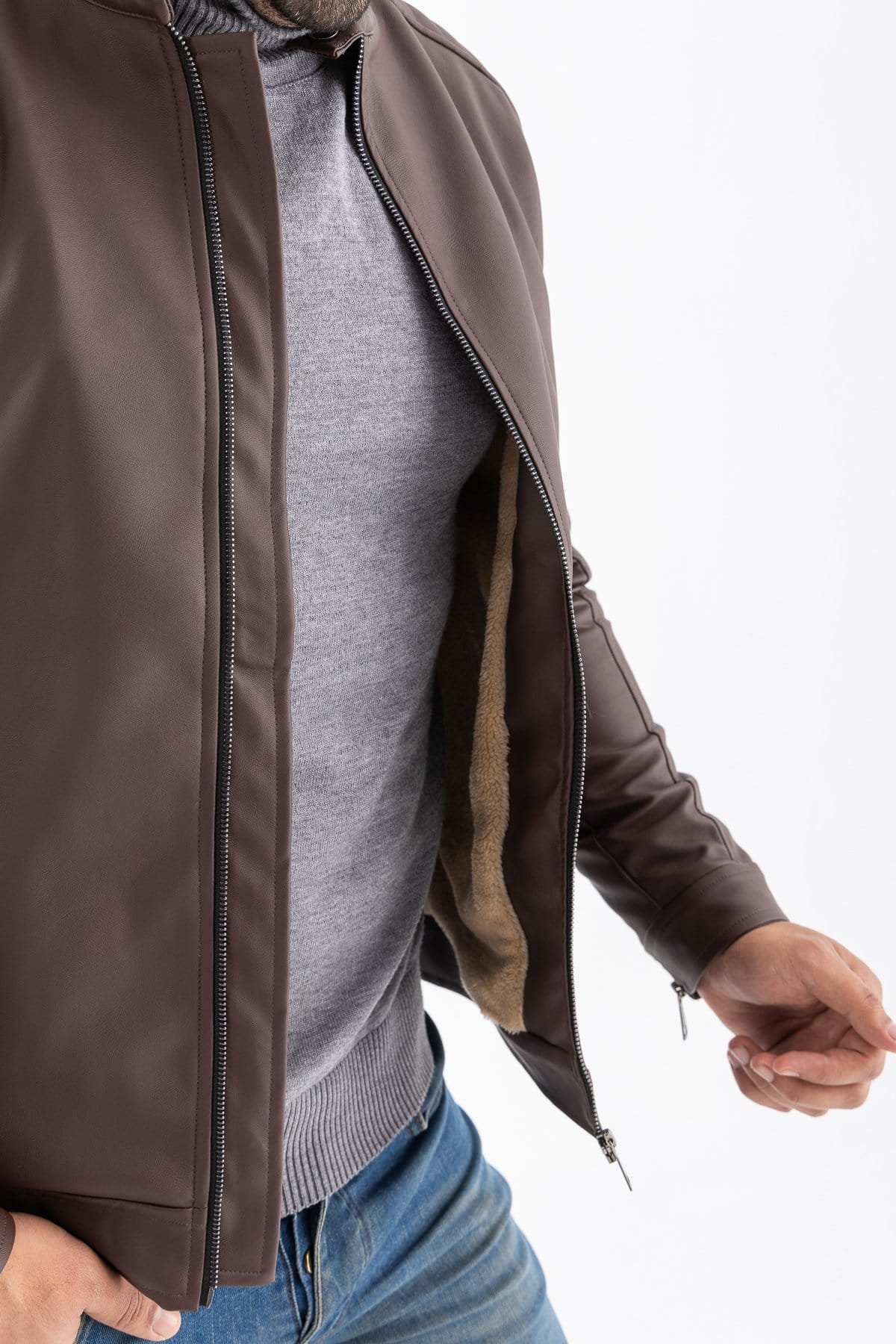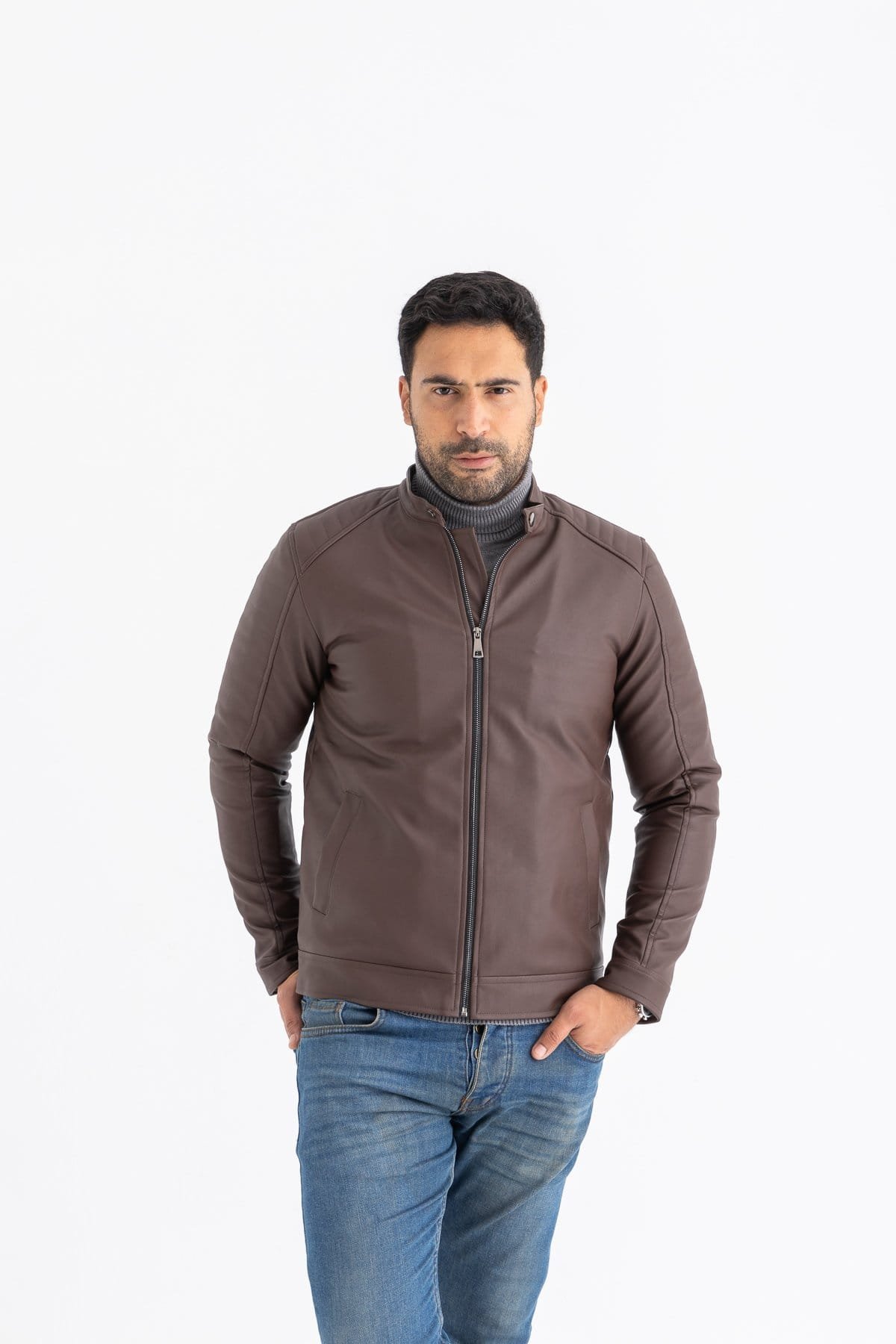 - Sophisticated Design: Featuring a classic silhouette with a contemporary twist, this jacket boasts a sleek Brown finish that complements any outfit. The attention to detail is evident in the fine stitching and precise cuts, making it a timeless wardrobe staple.