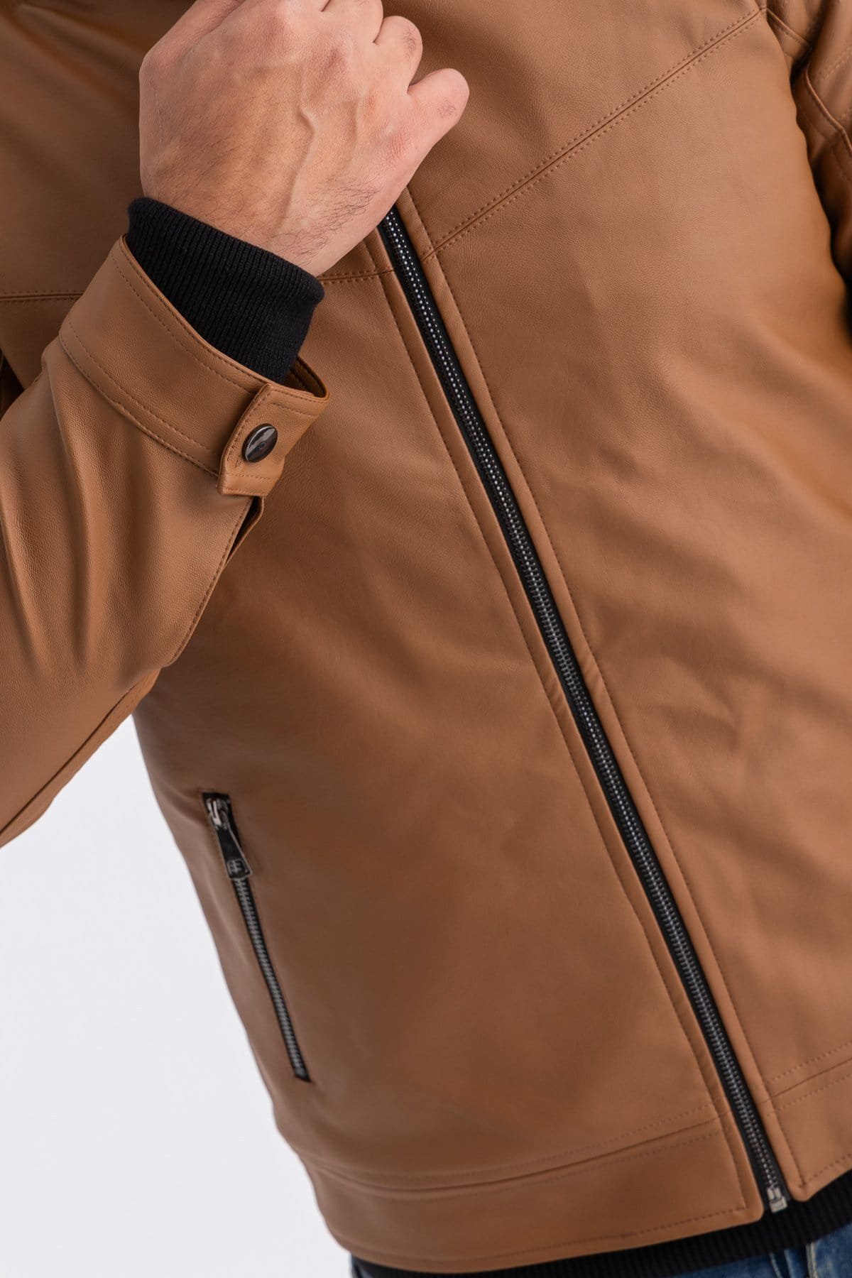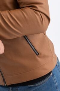 - Sophisticated Design: Featuring a classic silhouette with a contemporary twist, this jacket boasts a sleek Cognac finish that complements any outfit. The attention to detail is evident in the fine stitching and precise cuts, making it a timeless wardrobe staple.