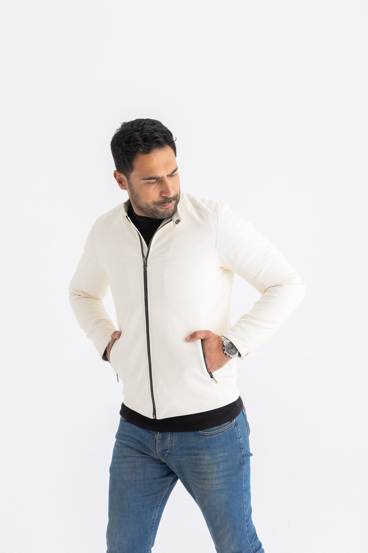 - Sophisticated Design: Featuring a classic silhouette with a contemporary twist, this jacket boasts a sleek White finish that complements any outfit. The attention to detail is evident in the fine stitching and precise cuts, making it a timeless wardrobe staple.